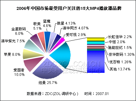 (图)2006年中国市场最受用户关注的15大MP4播放器品牌