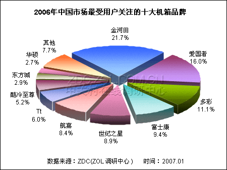 (图)2006年最受关注的十大机箱品牌关注度分布