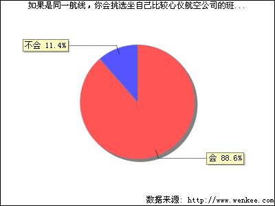 参与我们调查的人群中,有88.3%的人表示如果同一条航线如果有多家航空公司经营,会考虑选择自己心仪的航空公司。