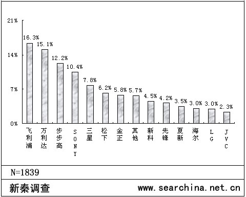 由此可见,被访者最愿意购买飞利浦影碟机,万利达排在第二位,而步步高则屈居第三位。