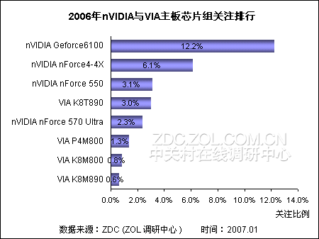 (图)2006年NVIDIA和VIA主板芯片组关注排行