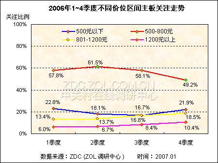 (图)2006年Q1-Q4不同价位区间主板关注走势