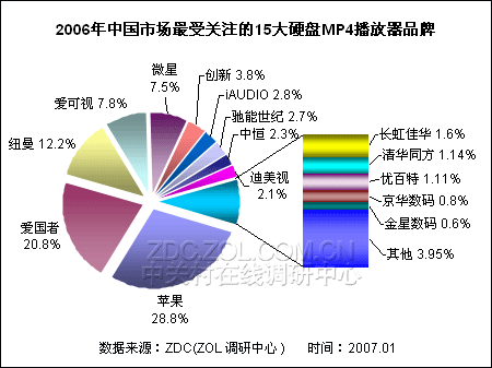 3、硬盘式——苹果独占1/4硬盘MP4市场关注度