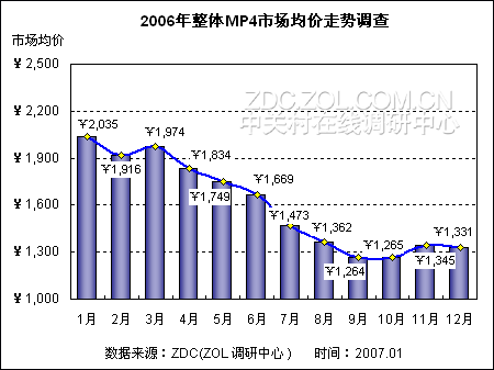 (图)2006年整体MP4市场均价走势调查