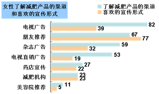 女性了解减肥产品的渠道和喜欢的宣传队形式:数据来源CTR2006年12月天会皓闻网络自主调查