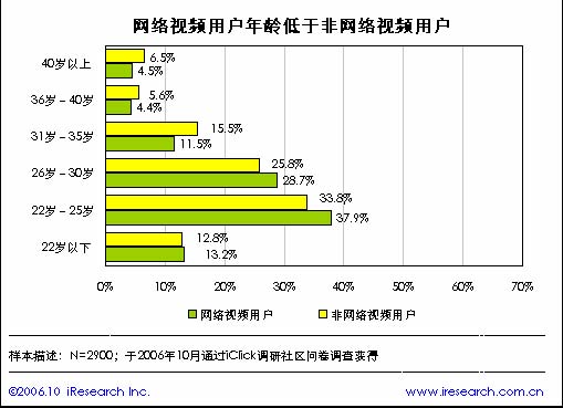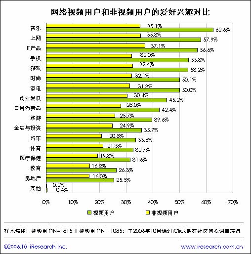 样本描述:视频用户N=1815非视频用户N=1085;于2006年10月通过iClick调研社区问卷调查获得 |