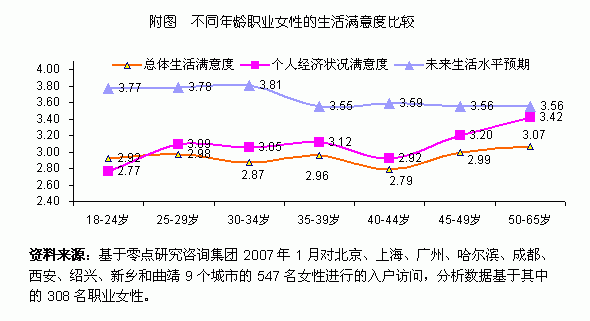30-34岁和40-44岁是职业女性生活满意度的两个低谷