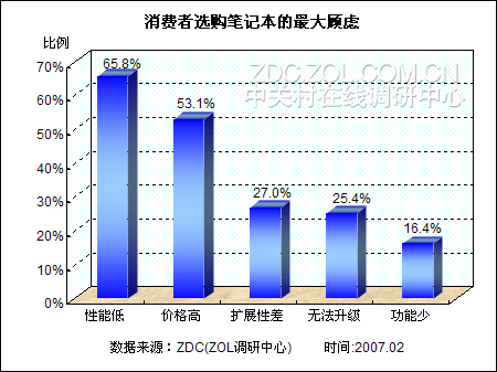 ?65.8%的消费者认为性能低是选购笔记本的最大顾虑