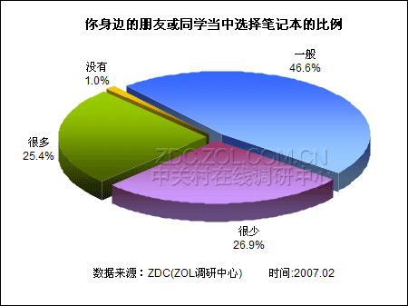 2.7 46.6%消费者身边的朋友或同学选择笔记本的比例一般