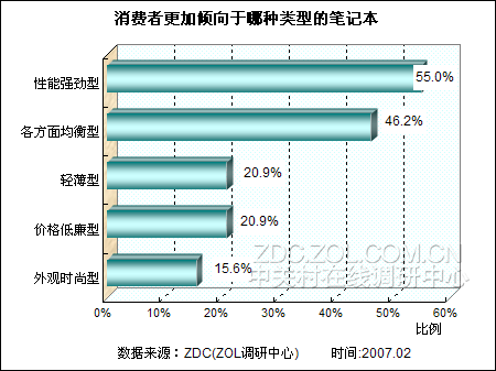 ?性能强劲型笔记本成为55.0%用户购买笔记本的首选产品