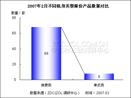 (图)2007年2月不同机身类型数码相机降价产品数量对比