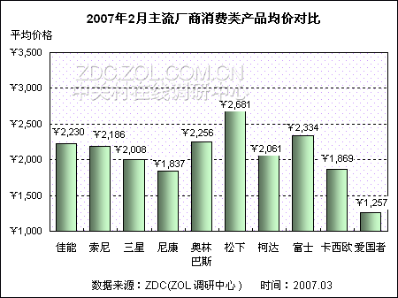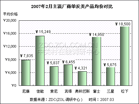 (图)2007年2月主流厂商单反数码相机产品均价对比