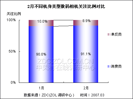 (图)2月不同机身类型数码相机关注比例对比