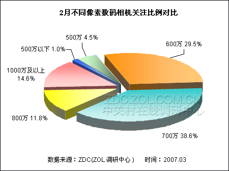 (图)2月不同像素数码相机关注比例对比