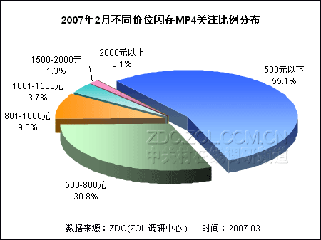 ●500元以下闪存MP4是市场重点,分占市场关注的大半江山;