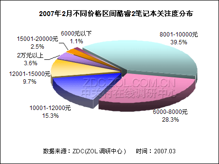 (图)2007年2月不同价格区间酷睿2笔记本关注度分布