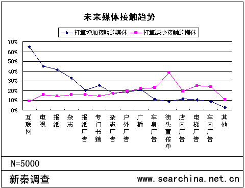 被调查者打算减少接触的媒介有:车身广告、街头宣传单、店内广告、电梯广告等,对于这些传媒,多数人其实是往往是被动接受,因此很多人都存在抵触情绪。