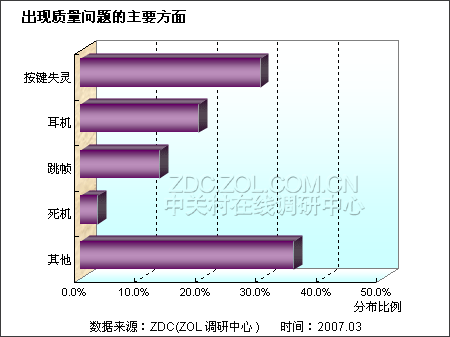 其二,MP4产品存在的质量问题较为突出,近三成质量问题出现在按键上;