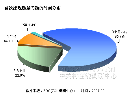 还有两成以上的消费者表示,在购买产品3-6个月就出现了质量问题。在半年以上出现质量问题的用户所占比例累计不足三成。这主要是因为当前MP4播放器在市场上的普及也就在近两年,因而市场普及率较低。