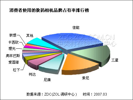 而与ZDC关注不同的是,三星在本次调查中位居排行榜第二的位置。对于在数码相机市场新兴起的厂商三星来说,较低的价格优势以及三星集团的品牌后盾支持,使其获得不少消费者的青睐。