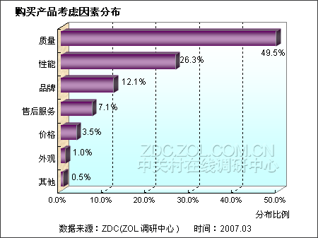 从这一比例分布状况来看,由于质量已经成为影响消费者购买行为的重要因素,因而只有把好质量关才能获得消费者的高度认可。