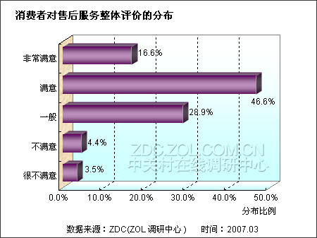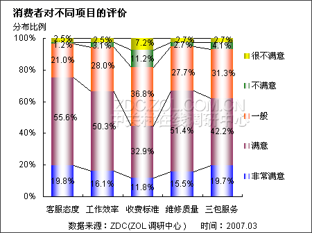 以下是消费者对五大项售后服务的评价状况,具体见下图。