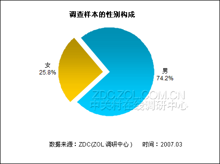 调查显示,回收的样本数量中以男性居多,占74.2%的比例,女性用户仅占25.8%的比例。男性消费群体与女性消费群体之比约为3:1。
