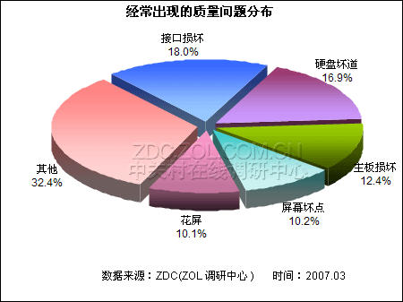 鉴于消费者在购买笔记本的过程中,对产品质量的看重,ZDC在本次调查中也对质量问题进行了详细的分析。