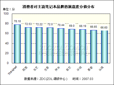 (图)消费者对主流笔记本品牌的满意度分值分布