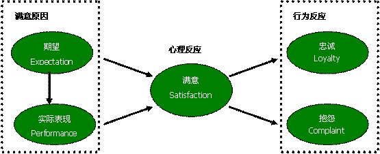 满意(Satisfaction)是指客户通过对一种产品/服务的实际表现(Performance)与其期望值(Expectations)相比较后,所形成的愉