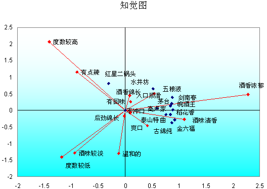 从以上分析结果,我们可以制定新品牌的品牌策略,比如,“度数较高”产品区域竞争对手较少,“度数较低”产品区域甚至还没有竞争对手,我们可以避开“酒香浓郁”产品区域,进入“度数较高”或者“度数较低”产品区域,当然这要视本身产品特点来决定。