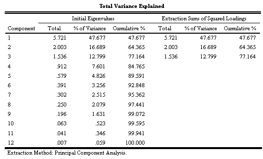 三个主成分共解释了77.164%的方差,前两个主成分解释了64.365%的方差,如果仅仅采取前两个主成分进行分析,肯定会损失12.799%的信息。如果取用三个主成分,则必须采用三维图形,非常不直观(即使在spss中绘图,标注仍然在二维上),通常碰到这种情况,笔者会采取第三种方法:因子聚类法。