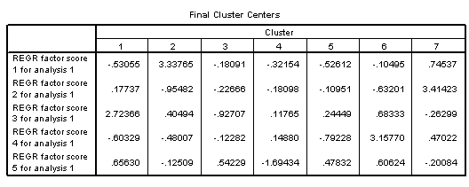 从图七可以看到,十三个品牌根据因子得分,最佳的聚类数量为7-8,实际上笔者是将品牌划分为七类,分类数据如下: