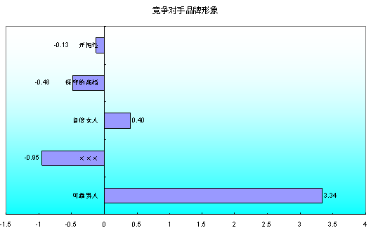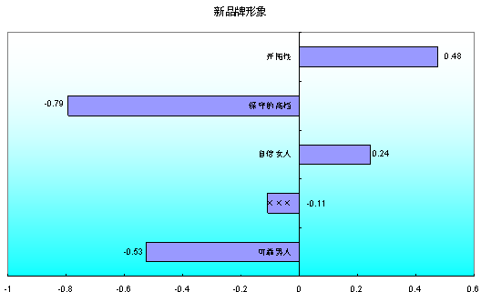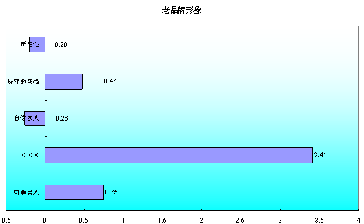 客户新品牌的创建比较失败,体现在品牌形象不鲜明,本身客户是打算将新品牌作为老品牌升级产品,实际上在推出的一两年中,新品牌远远没有达到预期。通过品牌形象分析我们可以看到在客户所独有的×××因子上,新品牌居然得不到消费者认可,女性形象反而凸现出来,对于白酒产品来说,女性形象无疑是一个非常不好的兆头。