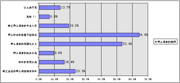相信通过以上的简单介绍您对网上研究有一个基本的了解,但很多人会仍然疑惑它在中国的可行性。AIP中国与协会联合进行的年度行业调查显示,国内企业对采用网上调研还有很多质疑,请参考以下图表: